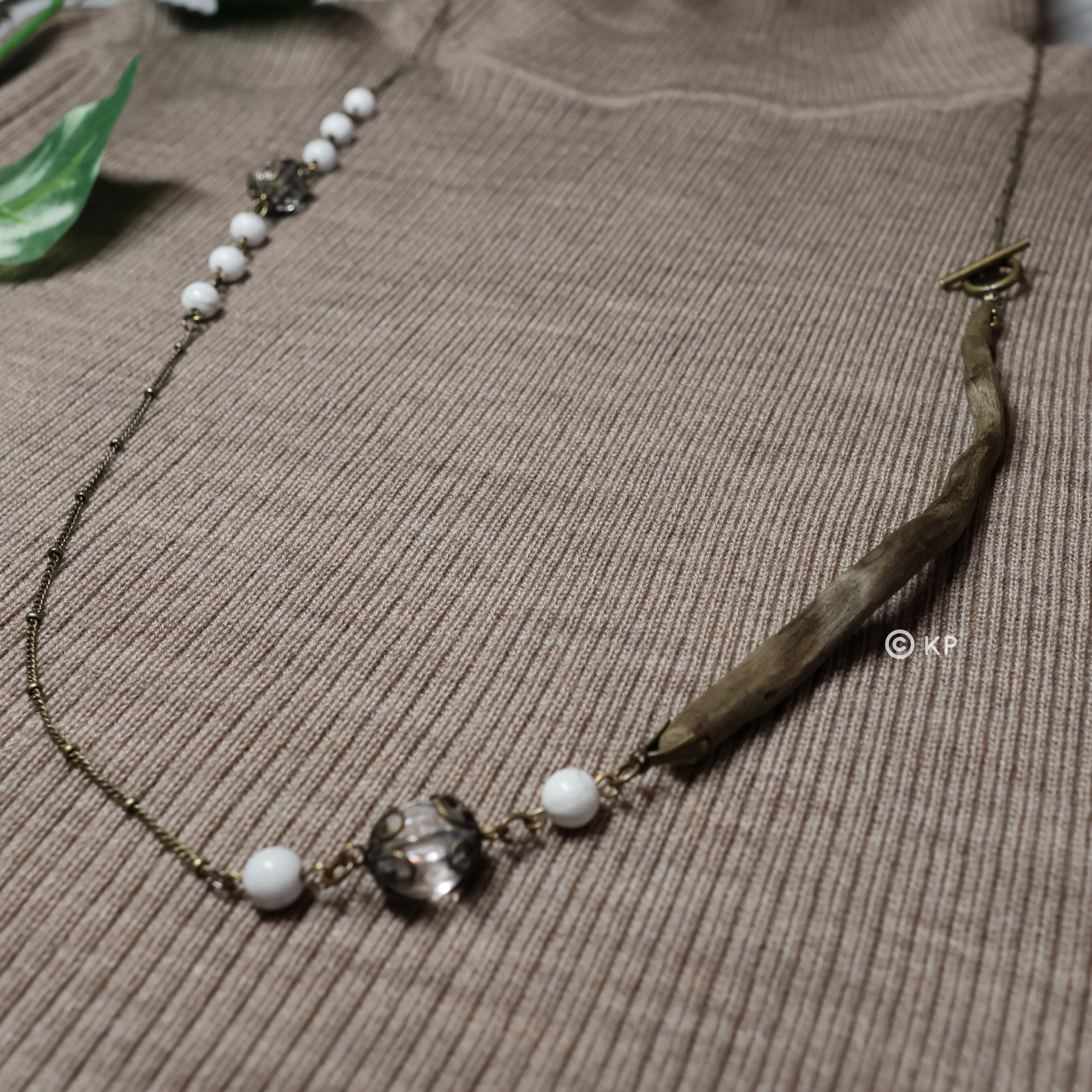 ・流木のナチュラルな質感にビーズがアクセントを加える美しいデザインで、様々なスタイルにマッチします。サイズはチェーン約72cmで、長さ調整不可です。