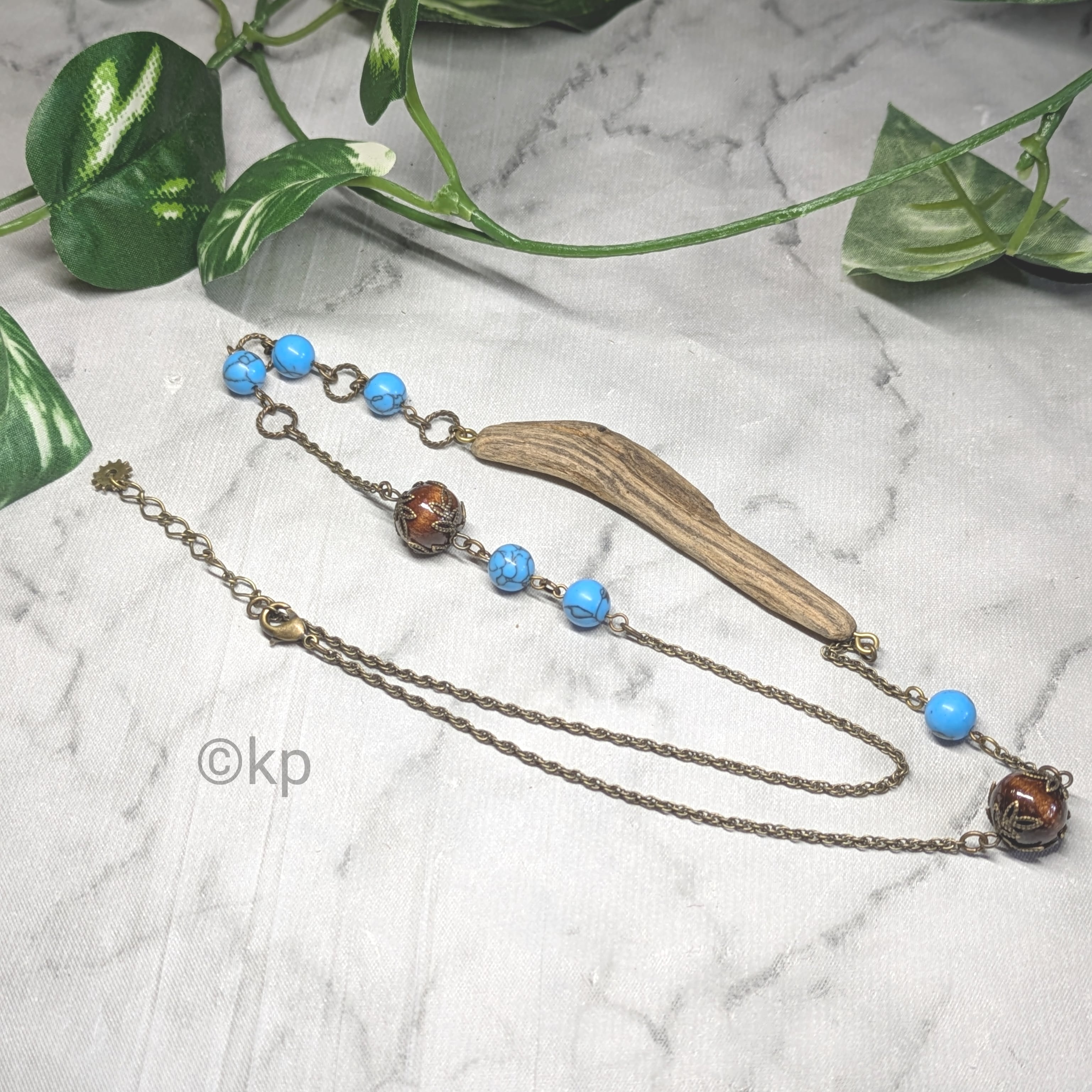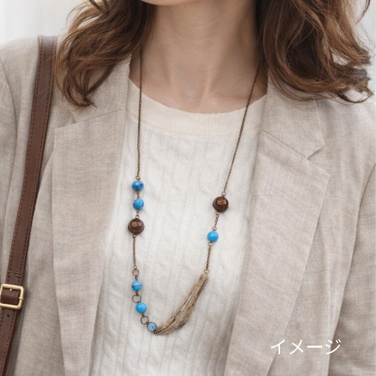 自然の温もりを感じることができる流木アクセサリー。流木とターコイズビーズを使用したハンドメイドの一点物で、ユニークなフォルムとナチュラルな質感が魅力的に。流木が持つ温かみは、あなたの日常コーディネートに特別なアクセントを加えるアイテムです!普段使いはもちろん、特別なシーンでも映える逸品として楽しんでいただけます。製造国は日本で、自然素材の持つ温もりを大切にしたアクセサリーです。