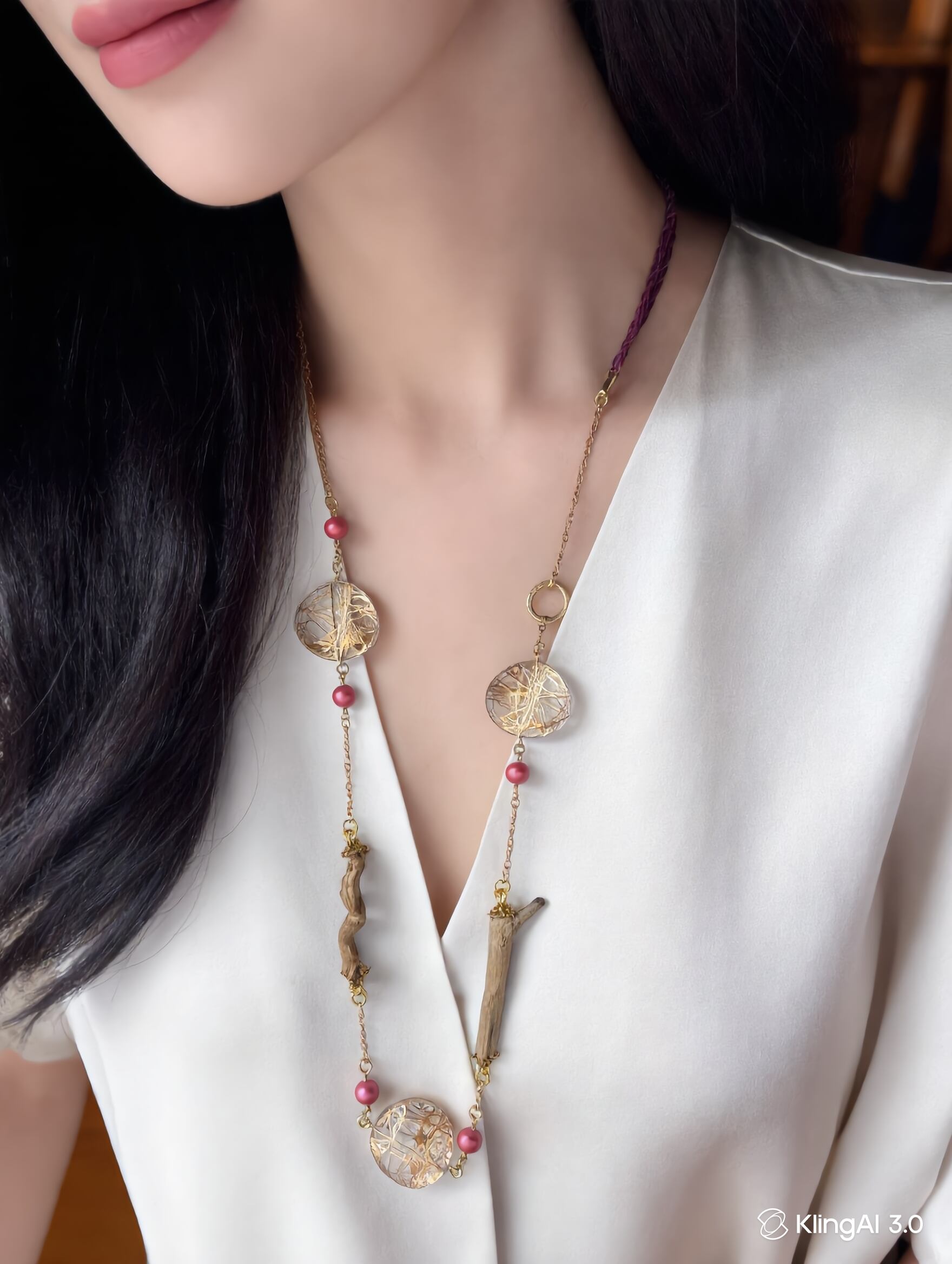 自然の温もりを感じることができる☆流木アクセサリー☆ ネックレス。流木を使ったハンドメイドの一点物で、ユニークなフォルムとナチュラルな質感が魅力のデザインに仕上げました。流木の独自の美しさは、あなたの日常スタイルに個性的なタッチを加える特別なアイテムです!普段使いから特別な場面まで、あらゆるシーンでご活用いただけます。